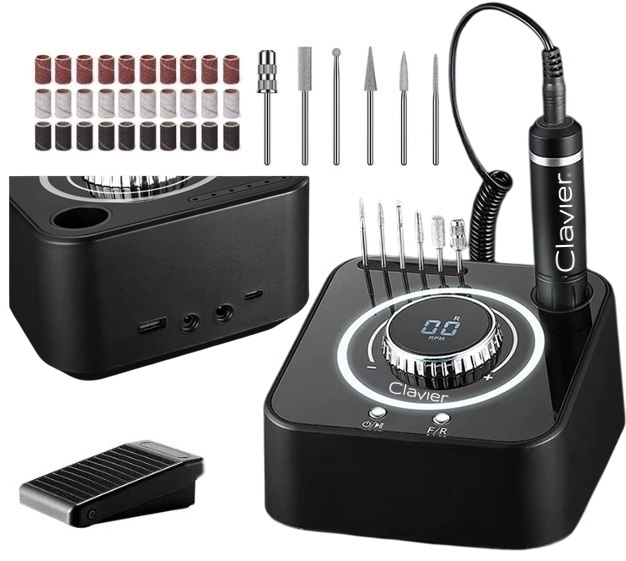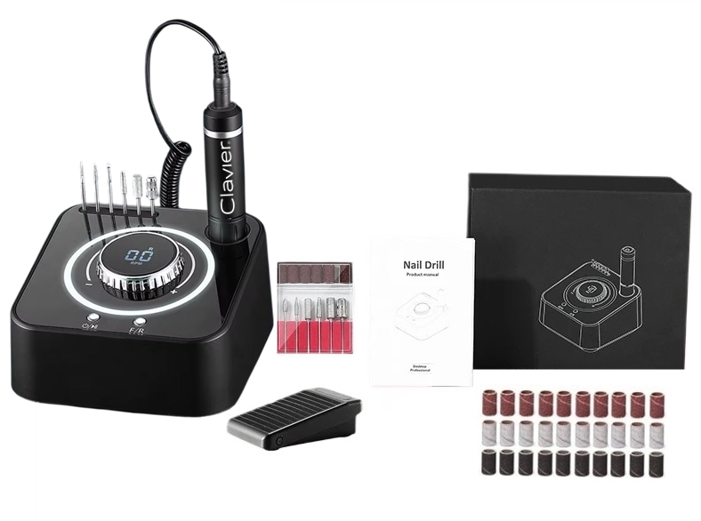 Frezarka 80W Czarna CLAVIER FX 1080 z pedałem do paznokci manicure pedicure wyświetlacz gratis zestaw frezów 40000 RPM