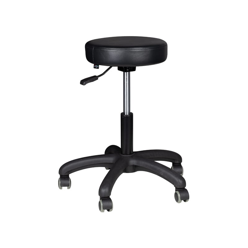 Wygodny taboret kosmetyczny, stabilny na pięcioramiennej podstawie, z gumowanymi kółkami . Niezbędny mebel w gabinecie kosmetycznym.
