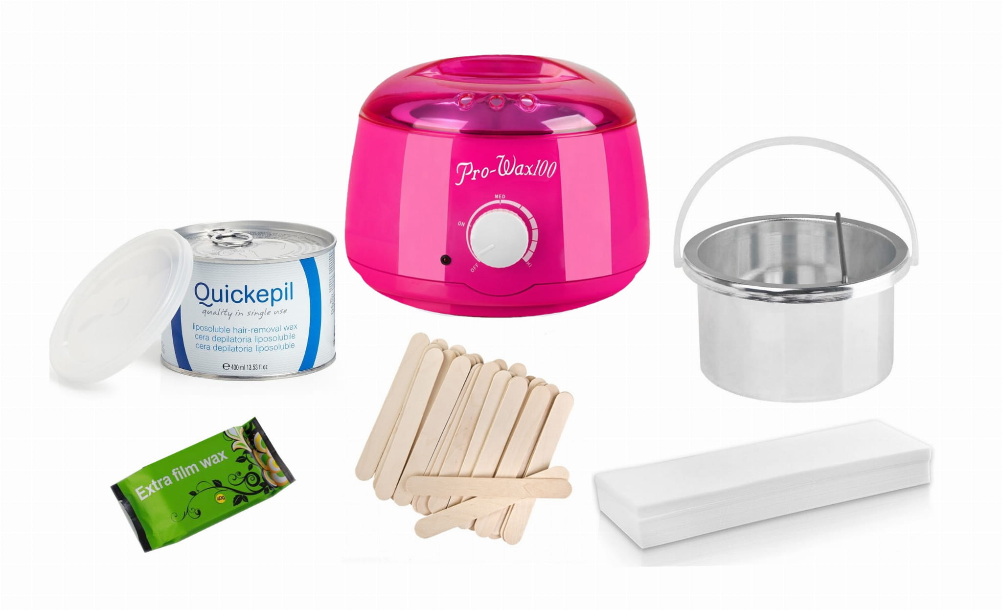 Zestaw Podgrzewacz Różowy Pink Pro Wax 100W do depilacji wosku w puszce 400ml wosku twardego gratis rondelek na wosk twardy + wosk 400ml + drewniane patyczki + paski do depilacji